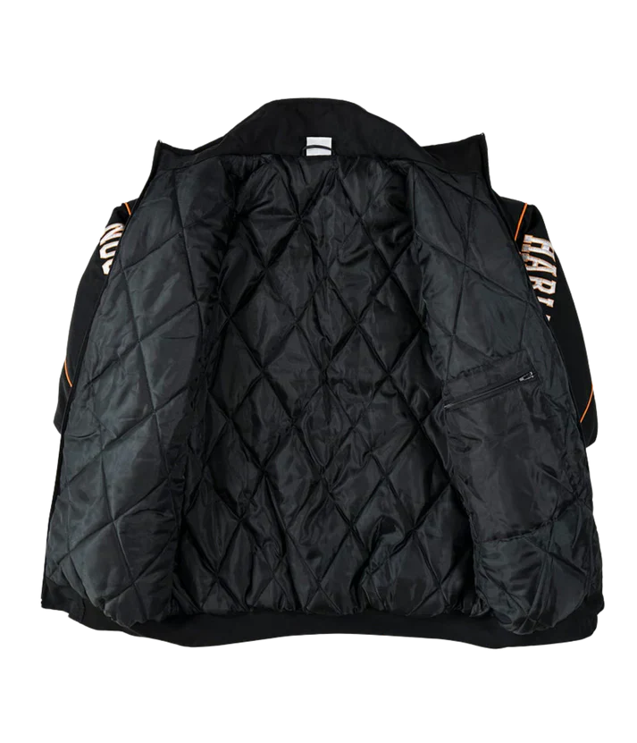 Realizzata in cotone e poliestere con imbottitura interna per un comfort ottimale. Design ispirato alle giacche vintage F1, con zip resistente e dettagli ricamati di qualità.