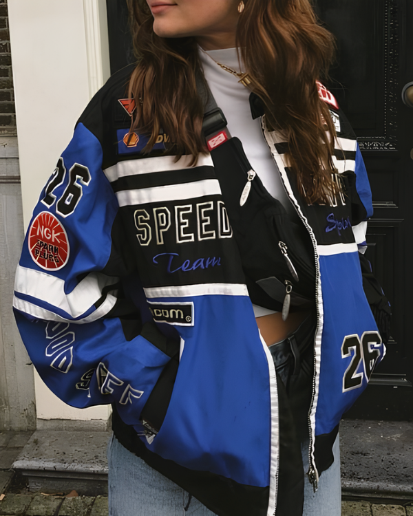 Realizzata in cotone e poliestere con imbottitura interna per un comfort ottimale. Design ispirato alle giacche vintage F1, con zip resistente e dettagli ricamati di qualità.