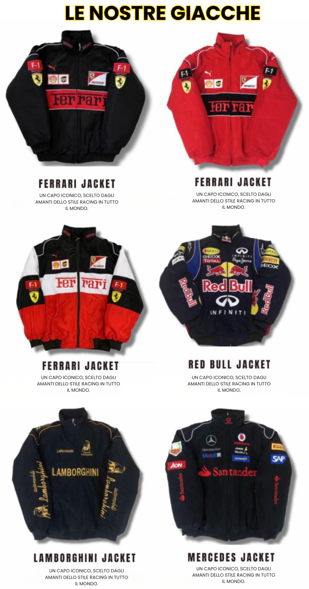 Sì! Tutti i nostri capi sono modelli vintage o ispirati al motorsport classico, curati nei minimi dettagli per un look autentico e intramontabile.